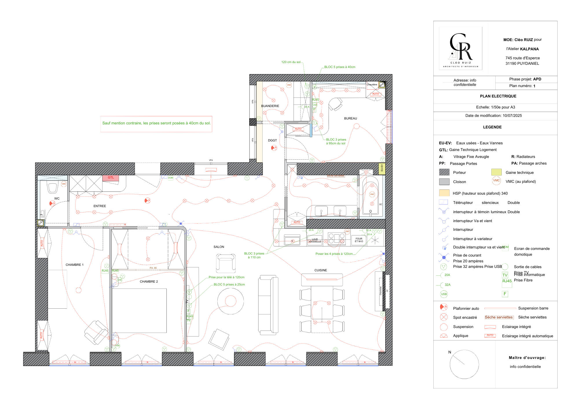 👇Le plan electrique: localise les points lumineux, interrupteurs, prises, domotique...